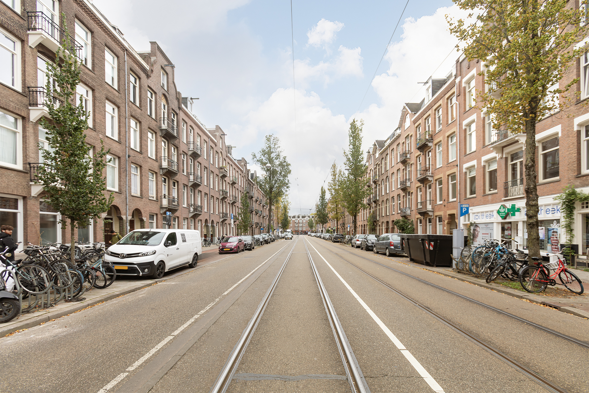 Je woont hier in het mooiste deel van de Admiraal de Ruijterweg: tussen de Jan Evertsenstraat en de Jan van Galenstraat. De straat is eenrichtingsverkeer en relatief rustig, met veel groen aan voor- en achterzijde. Om de hoek vind je alles wat Amsterdam-West zo geliefd maakt: goede koffie en croissantjes bij Fort Negen of Selma’s, lunch bij Rossi’s, borrelen bij Terrasmus of Café Thuys en uiteten bij le French Café of Neef van Fred. Ook de (film)Hallen liggen op korte fietsafstand.
