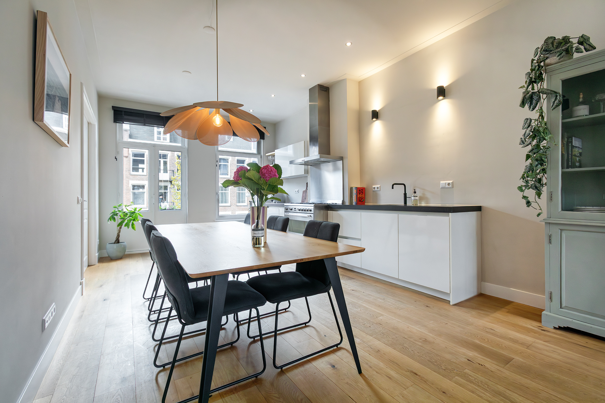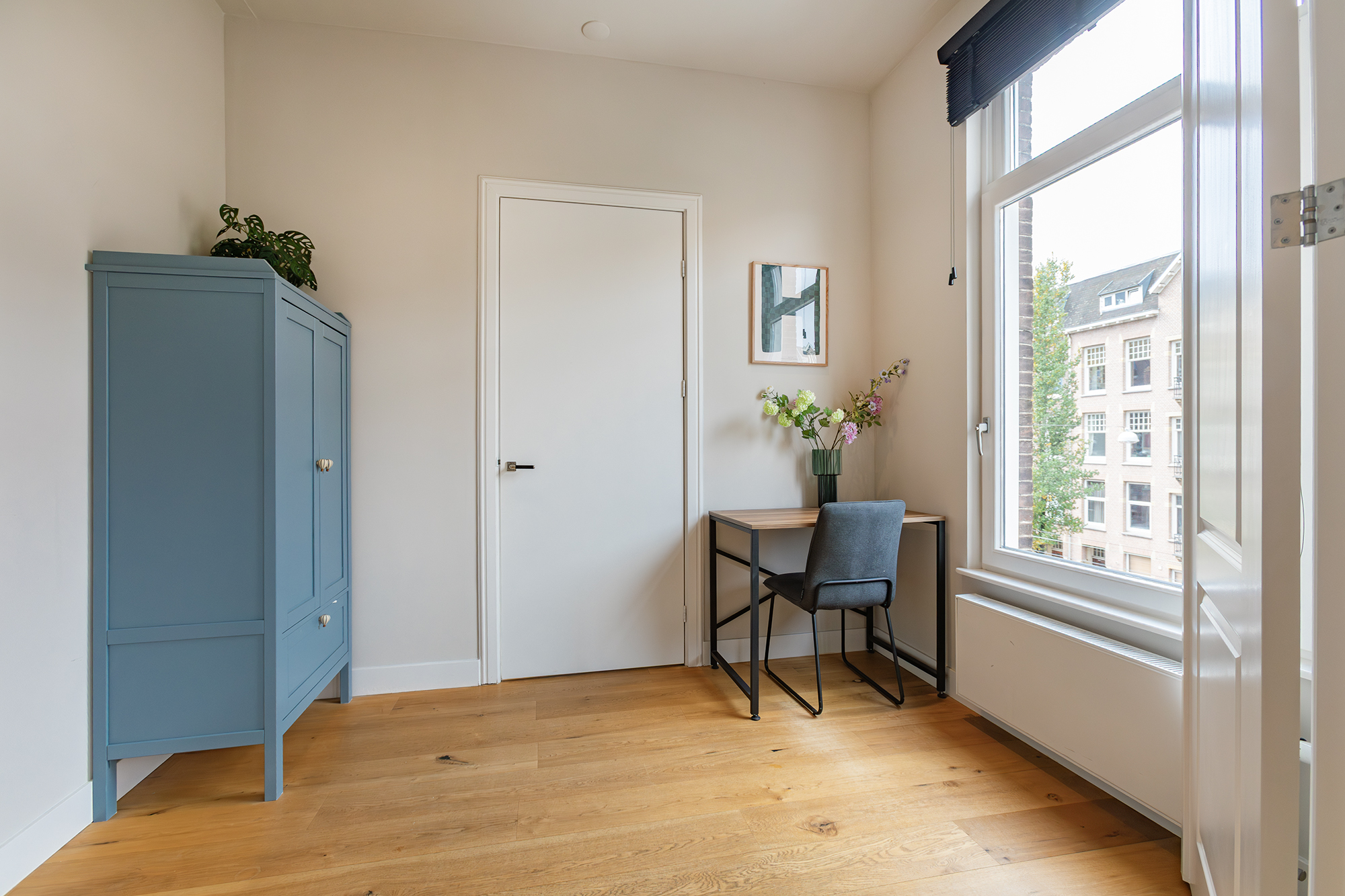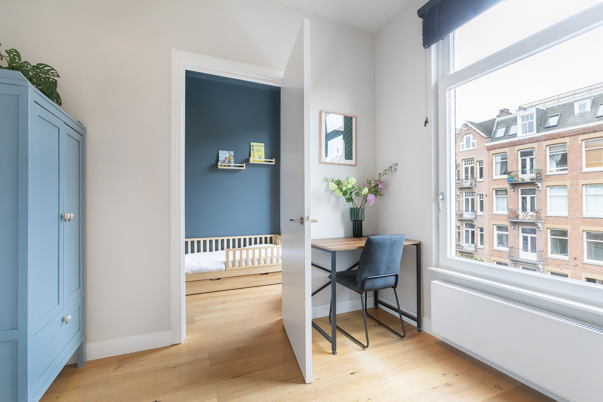This apartment is located in one of the most desirable parts of Admiraal de Ruijterweg — between Jan Evertsenstraat and Jan van Galenstraat. The street is one-way and relatively quiet, with greenery both at the front and back. Everything that makes Amsterdam-West so popular is around the corner: enjoy your morning coffee and croissant at Fort Negen or Selma’s, lunch at Rossi’s, drinks at Terrasmus or Café Thuys, and dinner at Le French Café or Neef van Fred. The (Film)Hallen are also a short bike ride away.