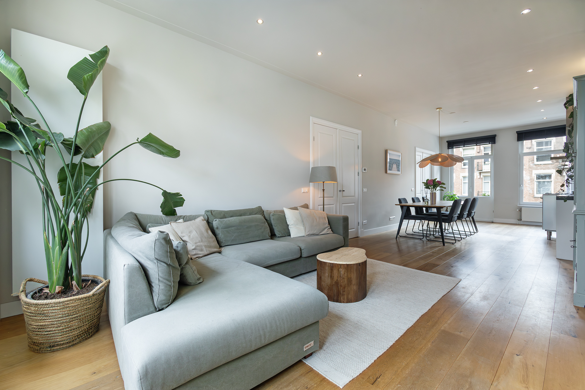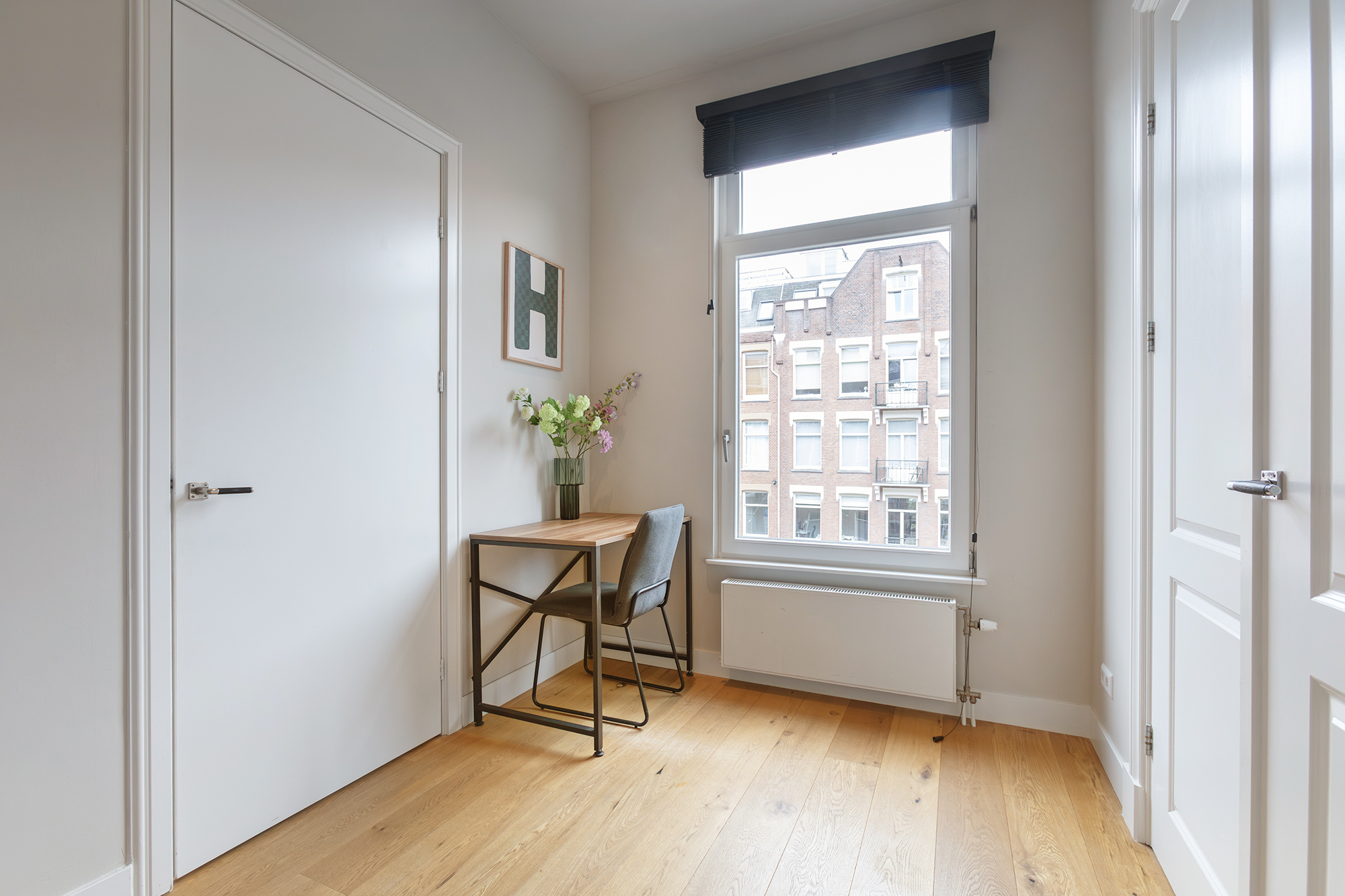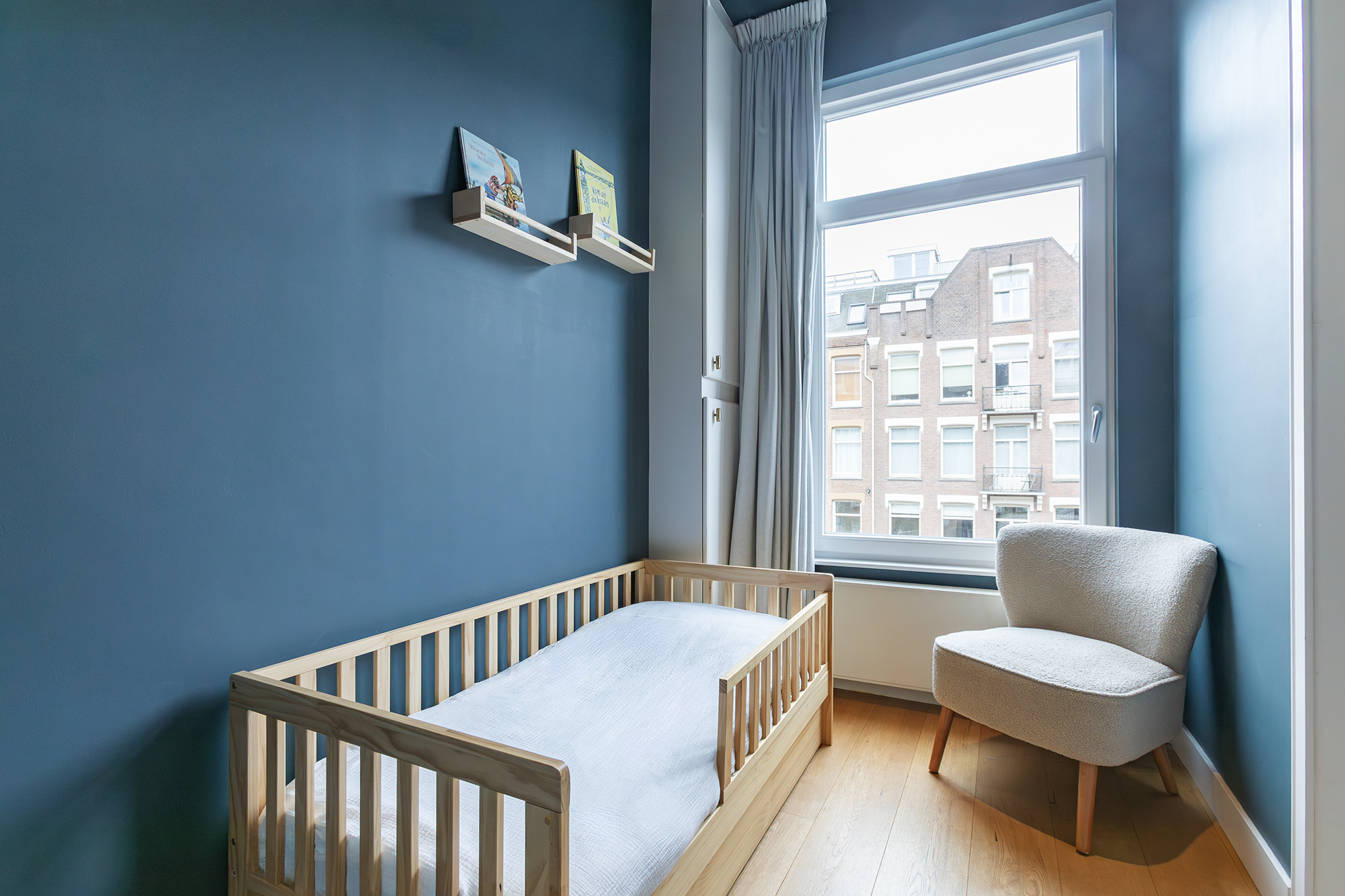 This apartment is located in one of the most desirable parts of Admiraal de Ruijterweg — between Jan Evertsenstraat and Jan van Galenstraat. The street is one-way and relatively quiet, with greenery both at the front and back. Everything that makes Amsterdam-West so popular is around the corner: enjoy your morning coffee and croissant at Fort Negen or Selma’s, lunch at Rossi’s, drinks at Terrasmus or Café Thuys, and dinner at Le French Café or Neef van Fred. The (Film)Hallen are also a short bike ride away.