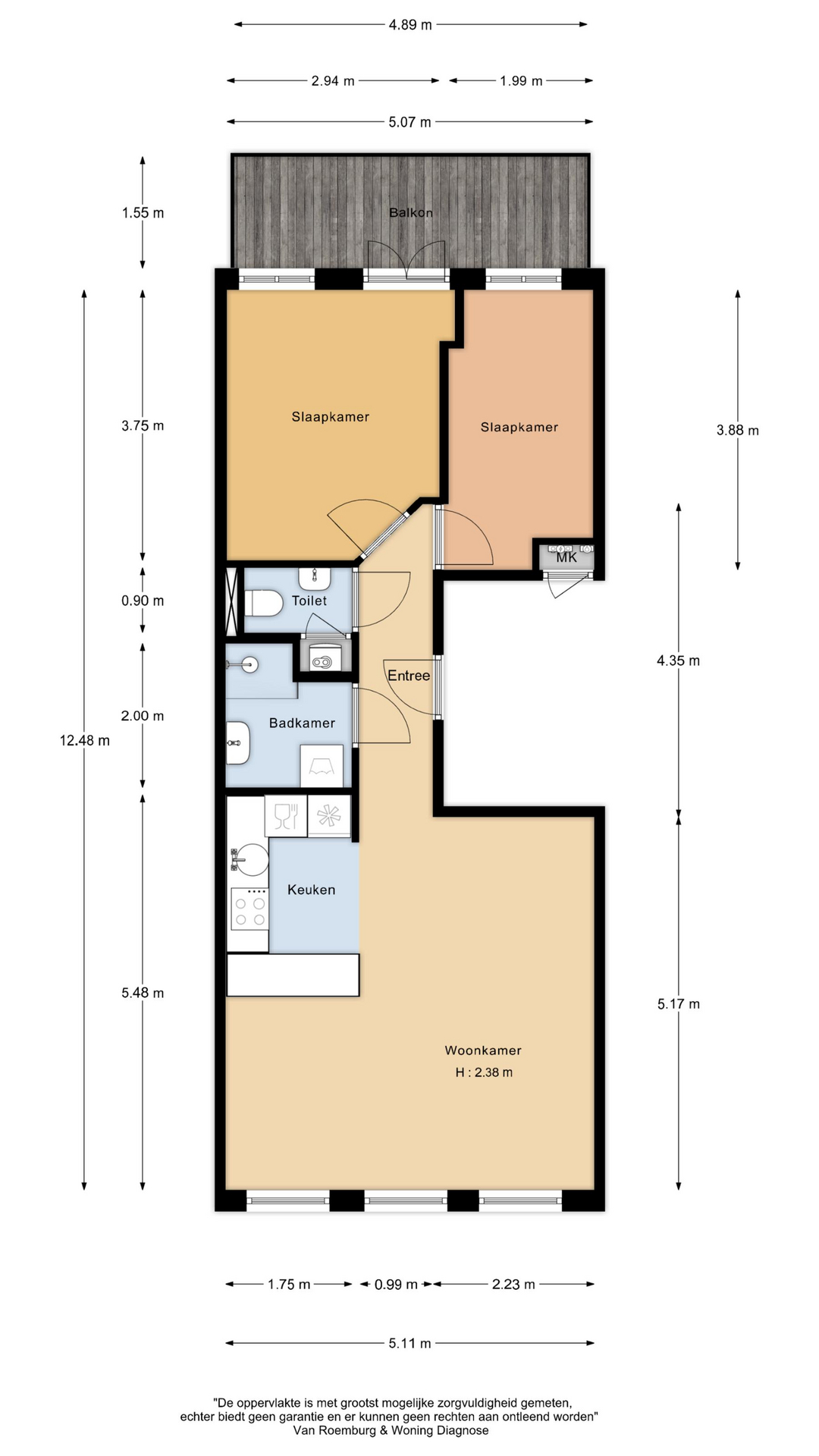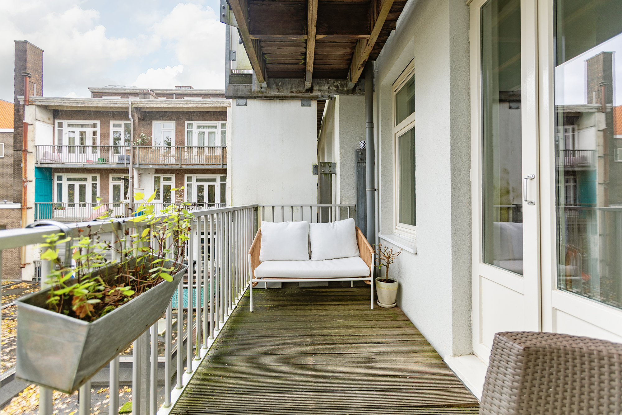 Het diepe balkon (8 m2) ligt aan de rustige achterzijde en kijkt fraai uit over het groen, een heerlijke plek voor je ochtendkoffie of een drankje aan het eind van de dag.