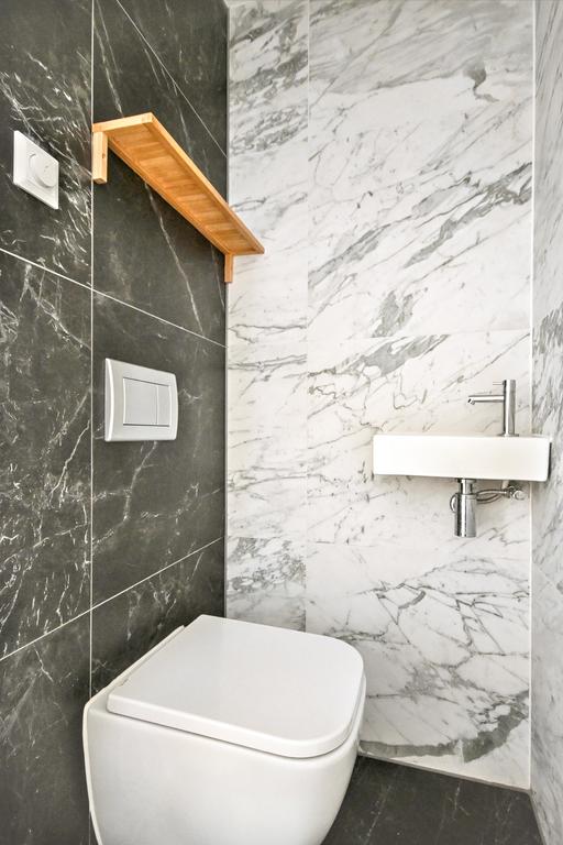 Via de entree op de tweede verdieping kom je binnen in de ruime, centrale hal met toegang tot de badkamer (2019) met douche en wastafel, een apart toilet (2019), de meterkast, de woonkamer, de keuken en de master bedroom.