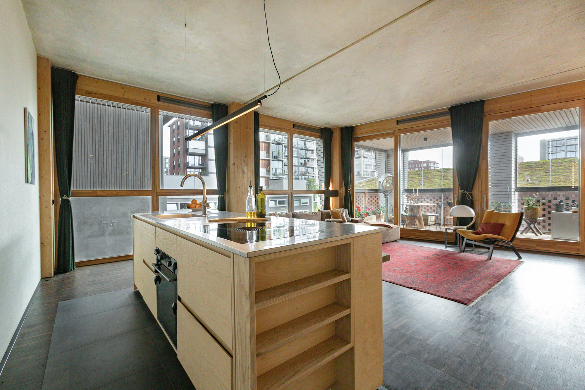 Top-Up is an award-winning residential building designed by FRANTZEN et al architects, and recipient of the Green GOOD DESIGN Award (2021) and the Golden Pyramid (2018). It is a modular wood-concrete hybrid, fully circular in design, energy-efficient (EPC 0.2), and completely demountable. Built atop a former PTT building, it quite literally gives the structure a second life. Residents here designed their own lofts, creating an innovative and future-proof living environment.