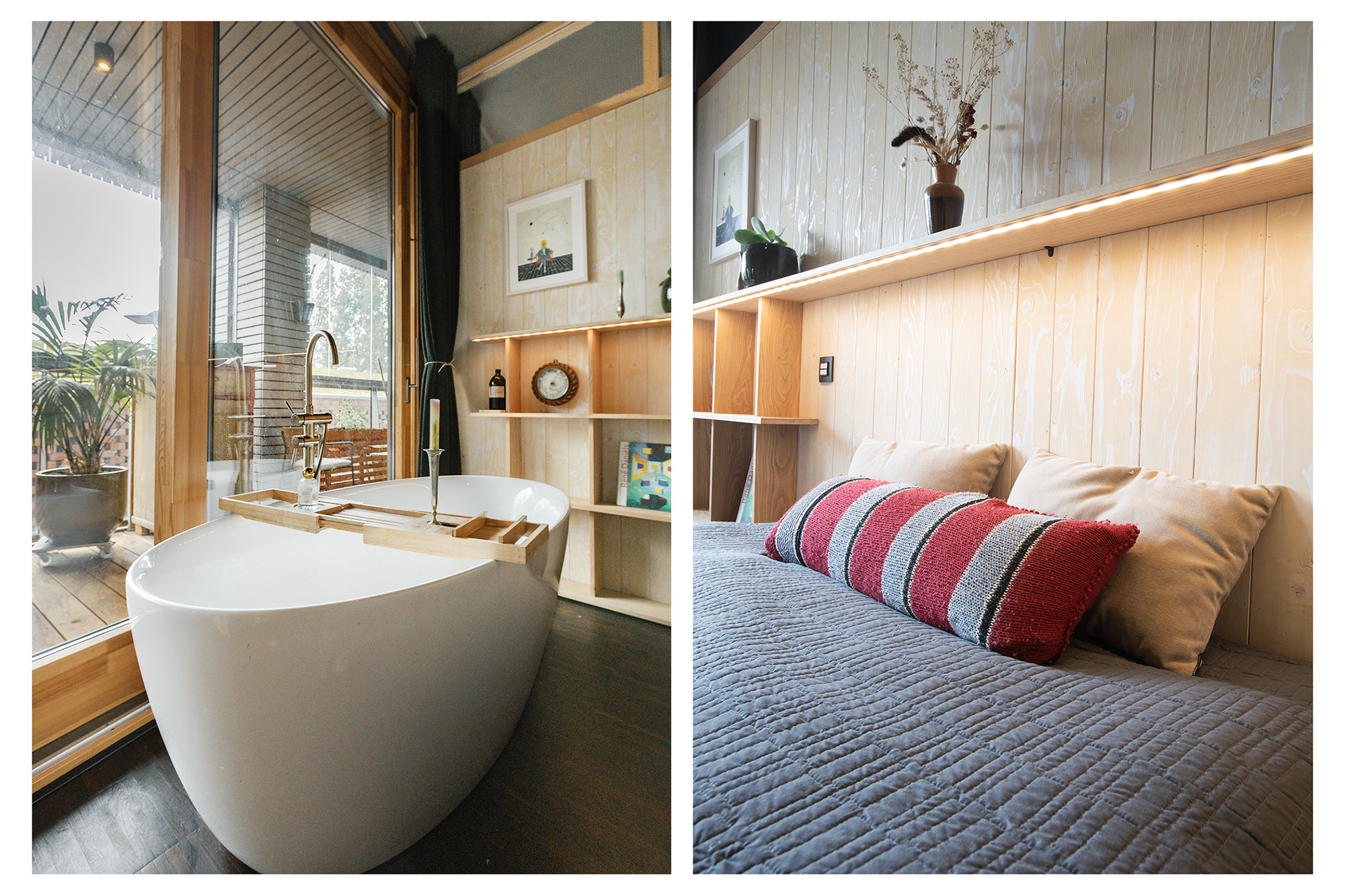 Upon entering, you immediately feel the calm, light, and height of this unique home. Designed as a hybrid loft with an open layout, it features three freestanding ‘box’ units that house the kitchen, bathrooms, storage, and sanitary facilities. This creates fluid spaces between the boxes, which can be flexibly used as sleeping areas, home offices, or living spaces.