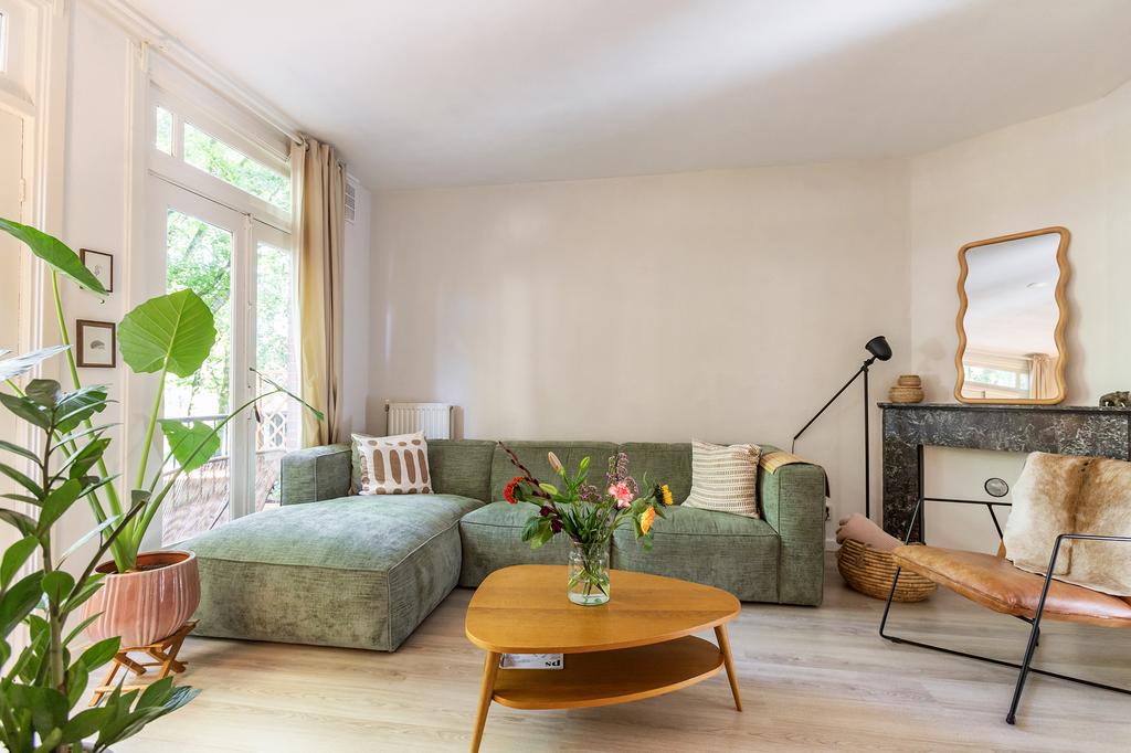 This apartment is located on a quiet street in the sought-after De Baarsjes district, just around the corner from the Jordaan and within walking distance of all kinds of amenities. Whether you’re in the mood for a good cup of coffee, a drink with friends, or a day of shopping, everything is within easy reach. For your daily groceries, you can go to supermarkets such as Albert Heijn and Aldi, and for an evening out, you are quickly at hotspots like le French Cafe, Zizou Coffee, and the Foodhallen. The tram stops for lines 13 and 19 are just 450 meters away and take you to the center of Amsterdam in a few minutes.