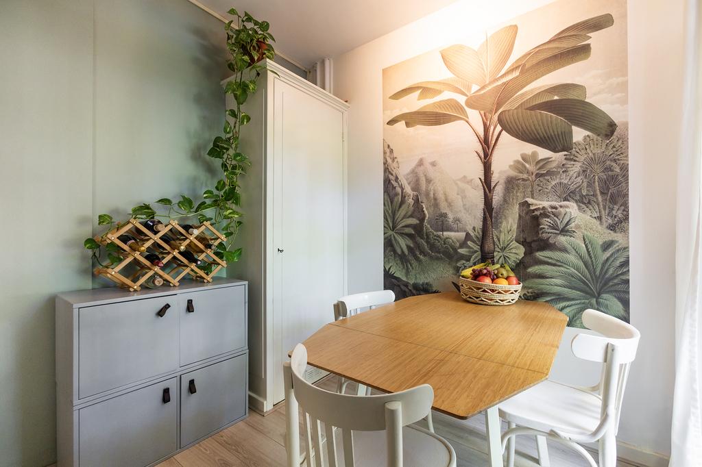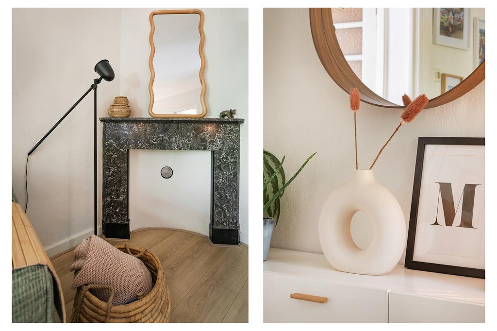 As you step into the living room, you are immediately treated to a beautiful view over the park in front of the house. Thanks to the large French doors, a lot of daylight enters, creating a light and spacious atmosphere. The living room directly adjoins the front balcony, where you can enjoy the evening sun in the summer. The laminate flooring provides a warm look, and the French doors make the space extra airy and cool in the summer.