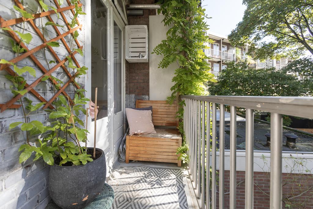 Dit appartement ligt in een rustige straat in de gewilde wijk De Baarsjes, om de hoek van de Jordaan en op loopafstand van allerlei voorzieningen. Of je nu zin hebt in een goede kop koffie, een borrel met vrienden of een dagje shoppen, alles is binnen handbereik. Voor je dagelijkse boodschappen kun je terecht bij supermarkten zoals Albert Heijn en Aldi, en voor een avondje uit ben je zo bij hotspots als le French Cafe, Zizou Coffee en de Foodhallen. De tramhaltes voor lijn 13 en 19 liggen op slechts 450 meter afstand en brengen je in een paar minuten naar het centrum van Amsterdam.