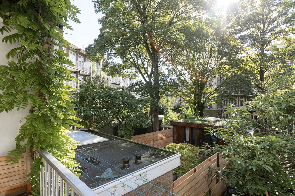 This apartment boasts three bedrooms. Two bedrooms are located at the quiet rear of the house and both have French doors to the south-facing balcony. Here, you enjoy the sun all day long, from early morning until the evening. The third (bed)room is at the front and offers a beautiful view over the greenery and water. It can be functionally used as a bedroom, dining room, or a practical workspace.
