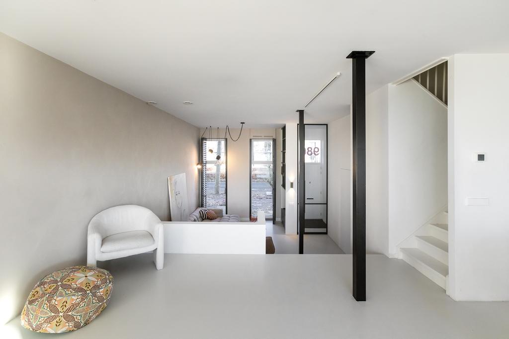 On the ground floor, you will find the recently renovated, open living space with a contemporary cast floor that creates a calm, modern atmosphere. The extra width at the back makes the living area exceptionally spacious and bright. The new kitchen, relocated to the garden side, features a cooking island with high-end appliances. The pictures speak for themselves: with the use of premium materials and an impressive design, the kitchen is a real showstopper. Large glass doors seamlessly connect the kitchen to the sunny garden, blending indoor and outdoor spaces.