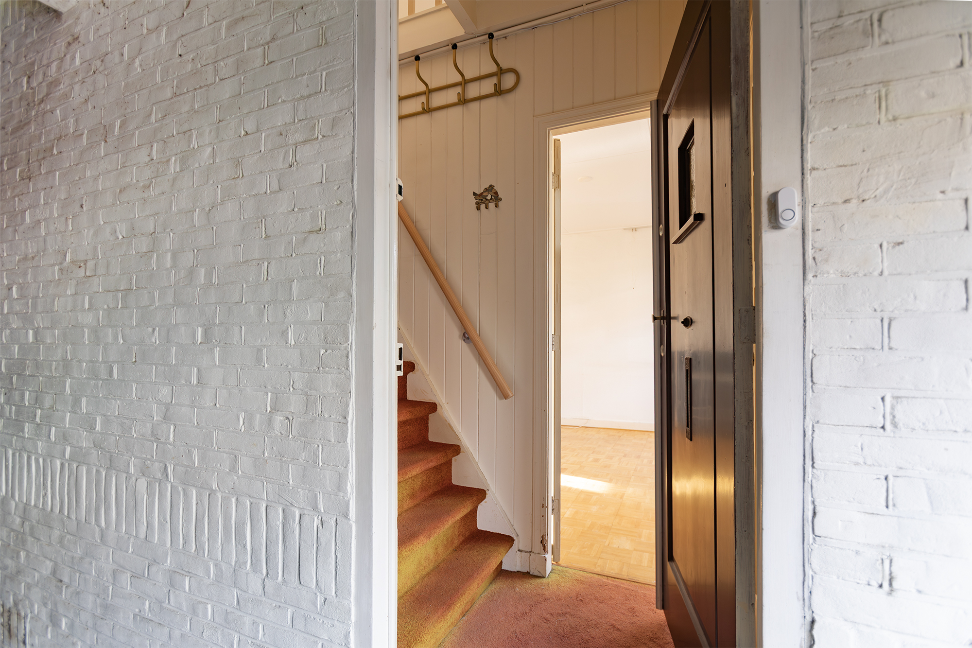 Je komt binnen via de zij entree in een hal met trapkast en apart toilet. Aan de voorzijde van het huis ligt de gezellige woonkamer — een fijne plek om te ontspannen, met zicht op de rustige straat. Aan de tuinzijde vind je de eetkeuken, met een eettafel én een baropstelling. Deze ruimte vormt het hart van het huis en biedt volop mogelijkheden om de keuken naar eigen wens vorm te geven. De woning is ruim voor 2000 intern gerenoveerd en staat momenteel leeg. De vaste trap naar de zolder geeft je extra potentie: van werkplek tot hobbyruimte of zelfs extra slaapkamer.
