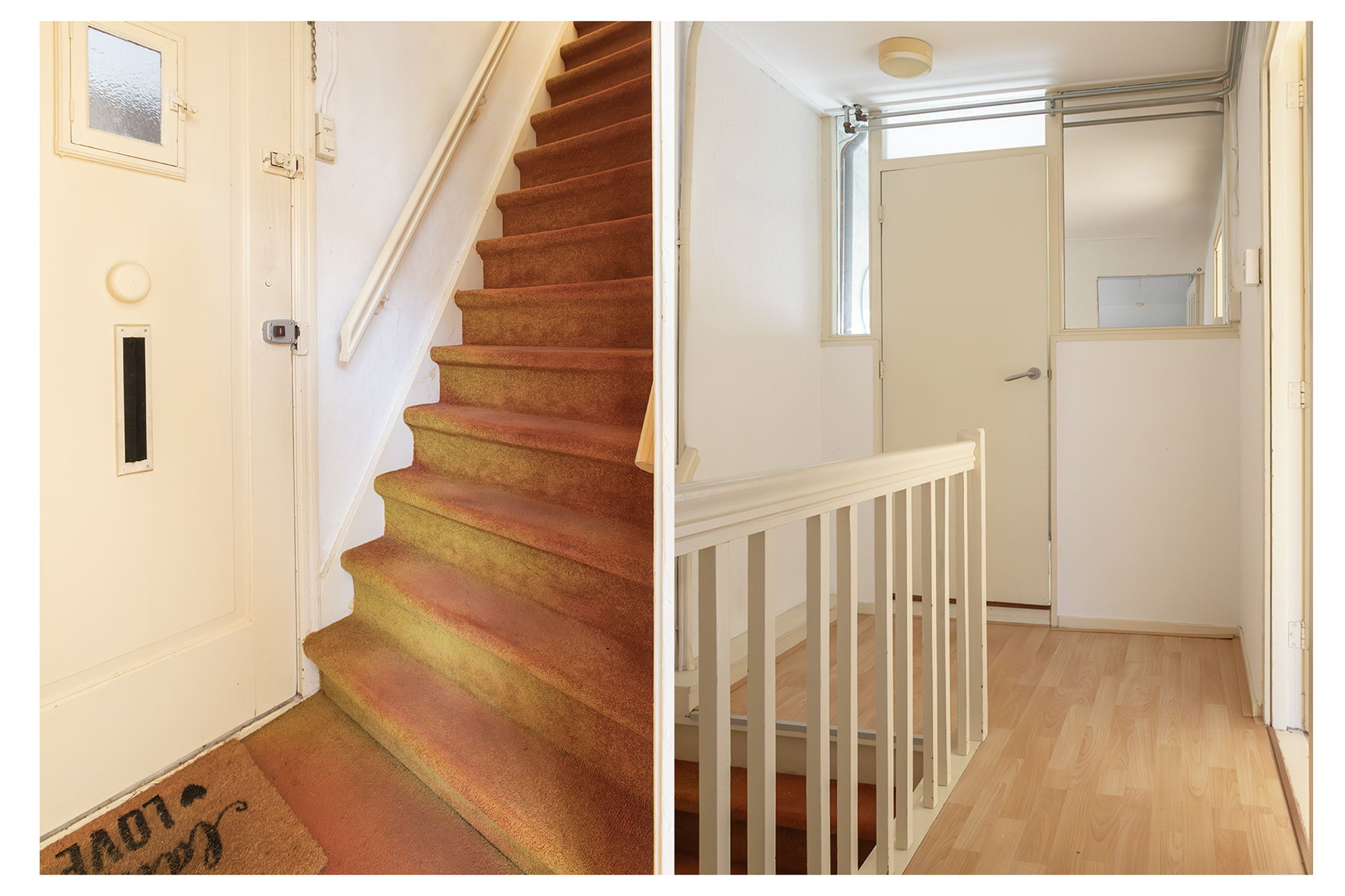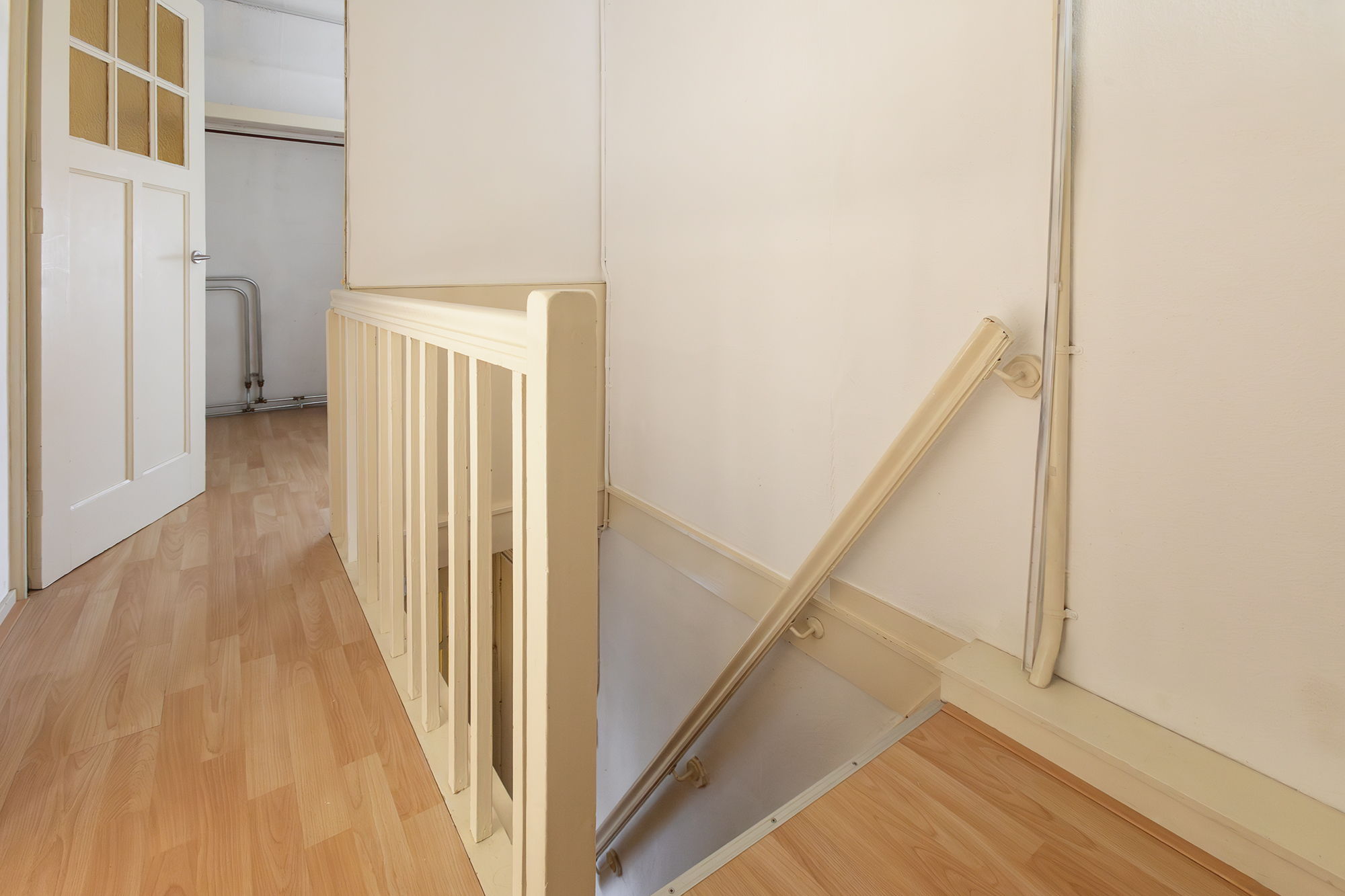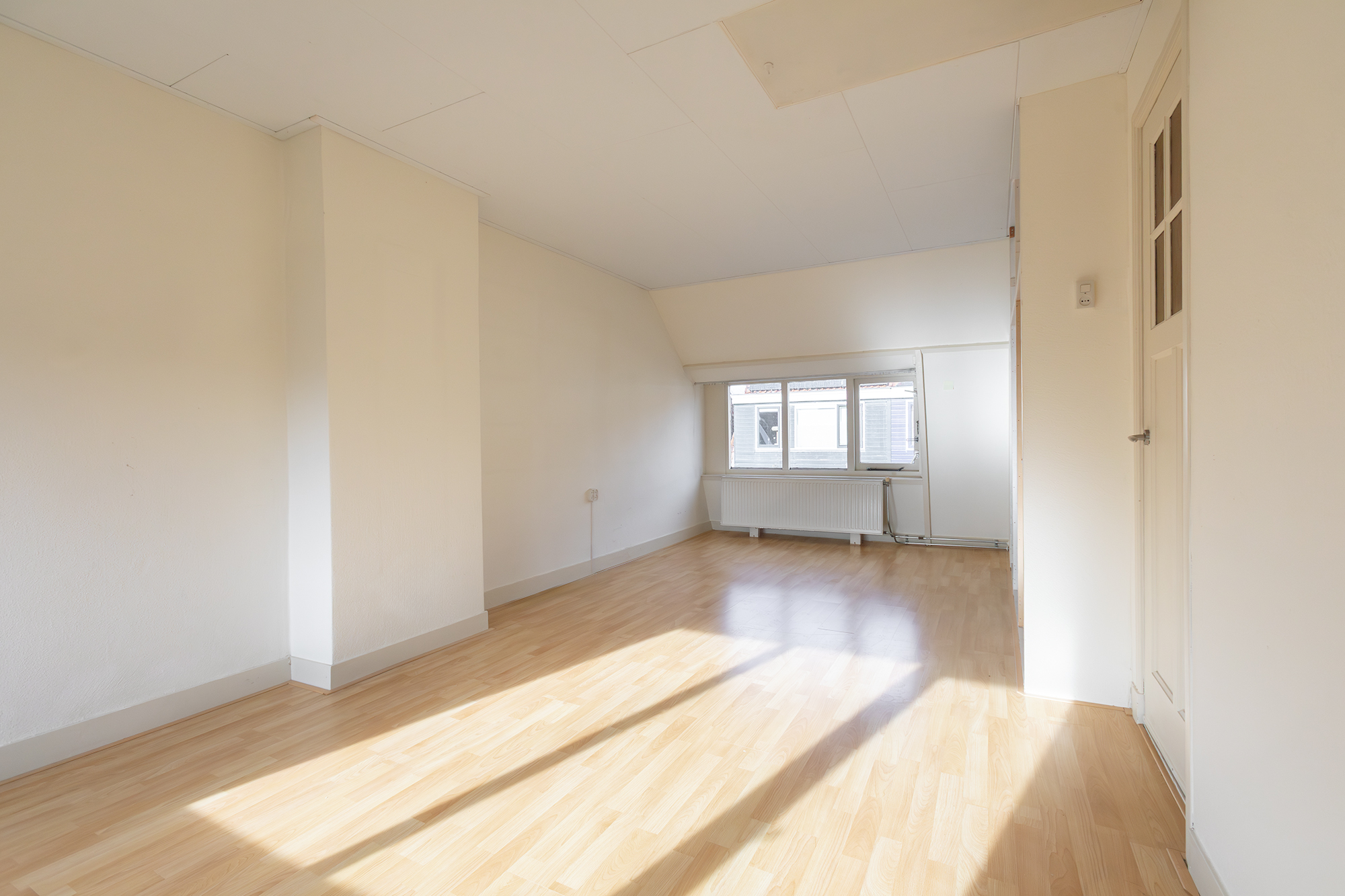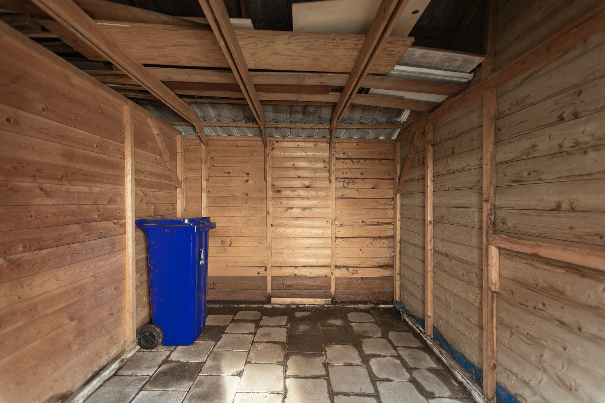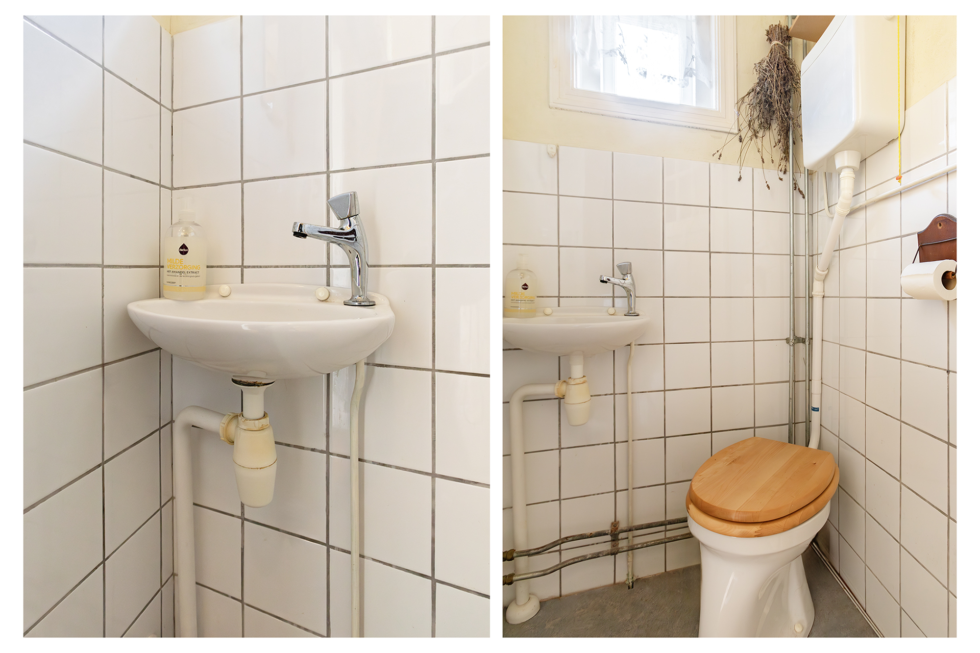 You enter through the side entrance into a hall with a stair closet and separate toilet. At the front of the house is the cosy living room — a comfortable place to relax, overlooking the quiet street. At the garden side you find the dining kitchen, with a dining table and a bar setup. This space forms the heart of the home and offers plenty of possibilities to redesign the kitchen as you like. The property was internally renovated before 2000 and is currently vacant. The fixed staircase to the attic gives you extra potential: from a workspace to a hobby room or even an additional bedroom.