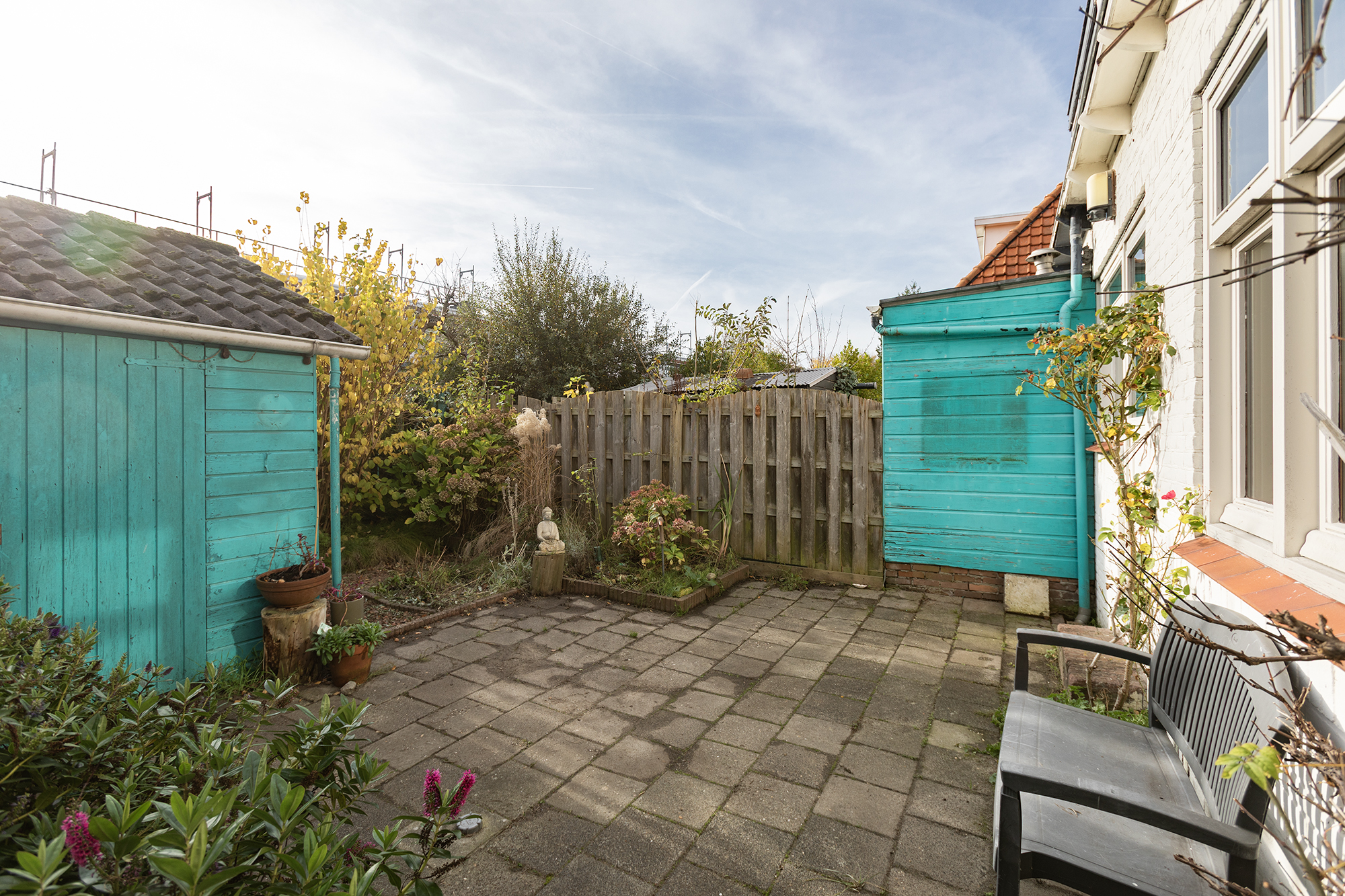 De achtertuin ligt op het zuidoosten en biedt de hele ochtend tot middag zon – perfect voor een ontbijt buiten, spelende kinderen of een fijne zithoek. De voortuin is netjes en geeft meteen een fijne eerste indruk van het huis. Achterom via de poort: handig voor fietsen of tuinspullen.