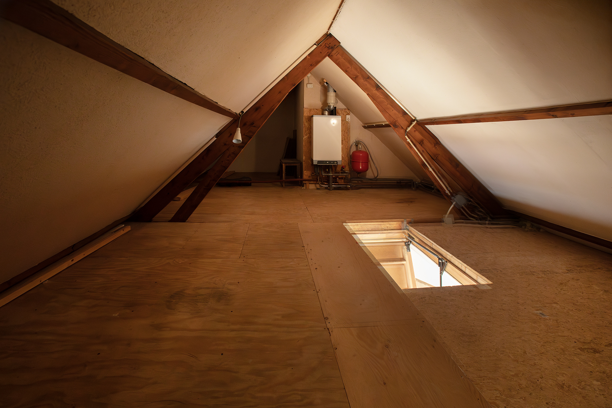 – Attic floor accessible with a loft ladder, with potential for a roof window