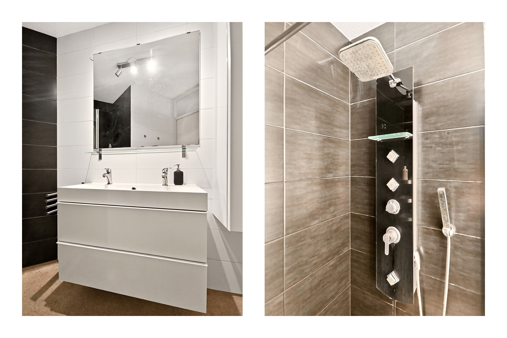 De royale slaapkamer ligt aan de voorzijde. De badkamer heeft een douche en een dubbele wastafel. Het toilet is apart van de badkamer.