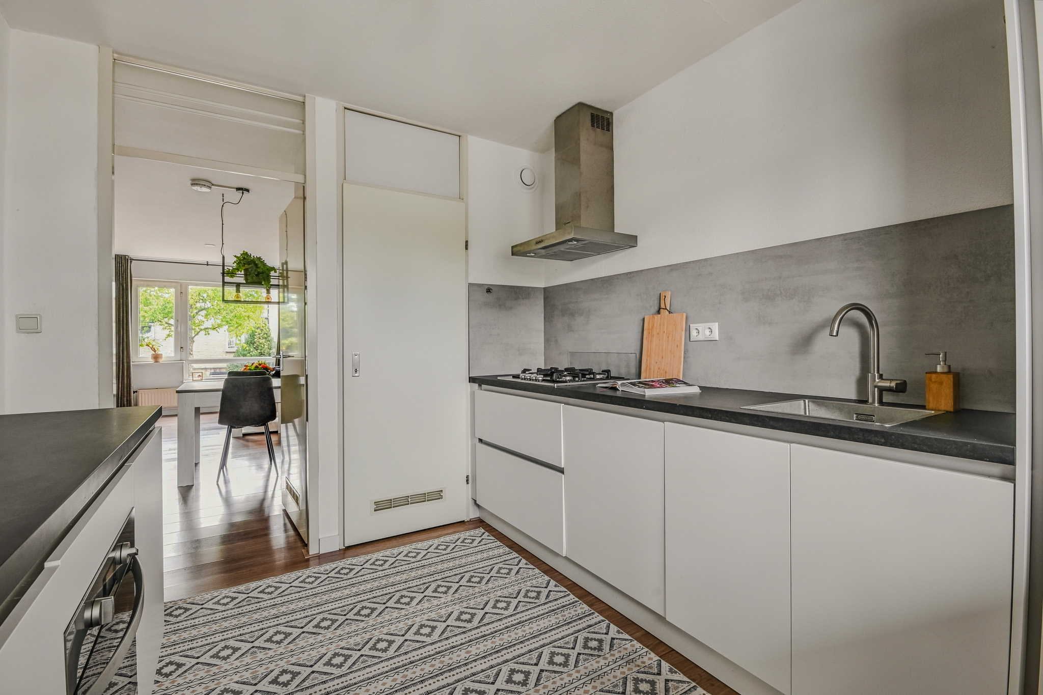 Via het gemeenschappelijke trappenhuis bereik je de entree van de woning, gelegen op een afgesloten galerij. De hal met handige kastruimte brengt je naar de lichte woonkamer. Aansluitend vind je de moderne keuken met inbouwapparatuur, C.V.-kast en extra bergruimte, ideaal om uitgebreid te koken of gezellig te borrelen met vrienden.