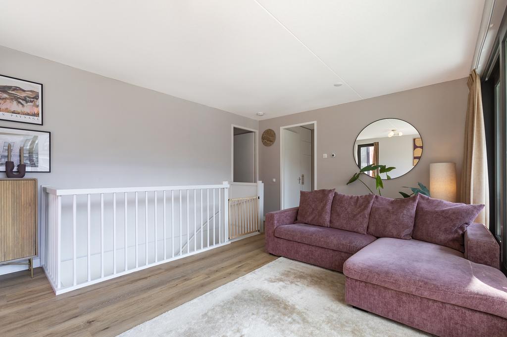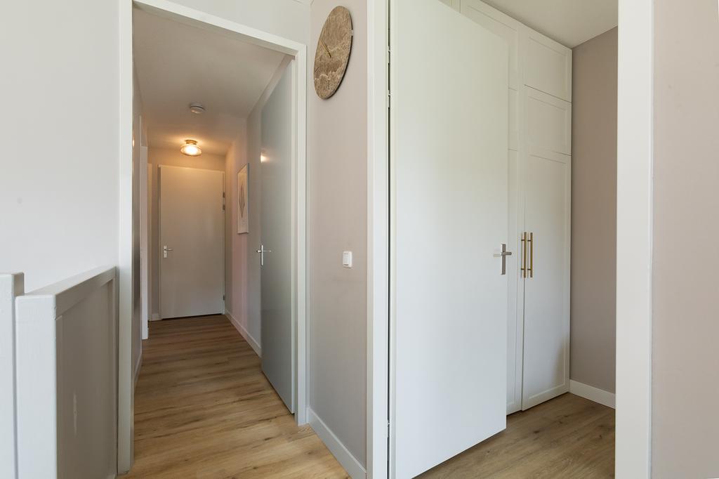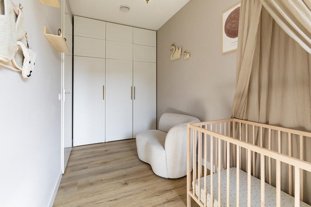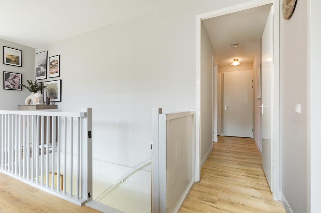 Er zijn 3 slaapkamers. In alle slaapkamers ligt de mooie PVC-vloer doorgelegd, dit betreft dezelfde tint vloer als de visgraatvloer beneden maar dan op de bovenverdieping in banen. De strakke, ruime badkamer heeft een inloopdouche en een licht wastafelmeubel.