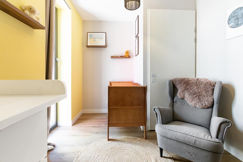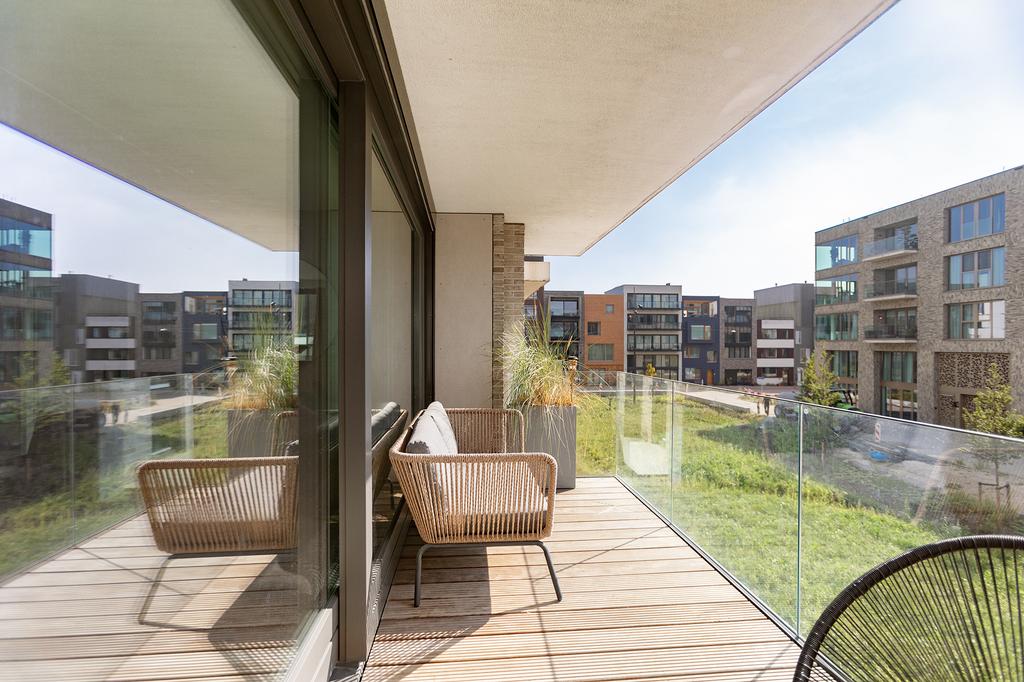The full-width balcony at the front is accessible through the large sliding door in the living area. On the ground floor, there is currently a bench in front of the kitchen side so you can also enjoy the sunshine here and keep an eye on any children. On the south-facing balcony, you can enjoy the sun from early morning until late afternoon.