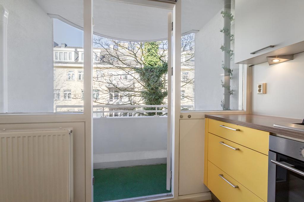 De aparte keuken is een echte plus! Je kunt hier ongestoord koken en tegelijkertijd genieten van een eethoek in de keuken. De keuken is in 2015 gerenoveerd en heeft toegang tot het balkon aan de achterzijde, waar je ’s middags en ’s avonds van de zon kunt genieten.
