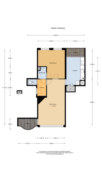 Het appartement heeft een woonoppervlakte van 59 m²; dit is exclusief de berging. De woning is door een extern bureau ingemeten conform NEN2580.