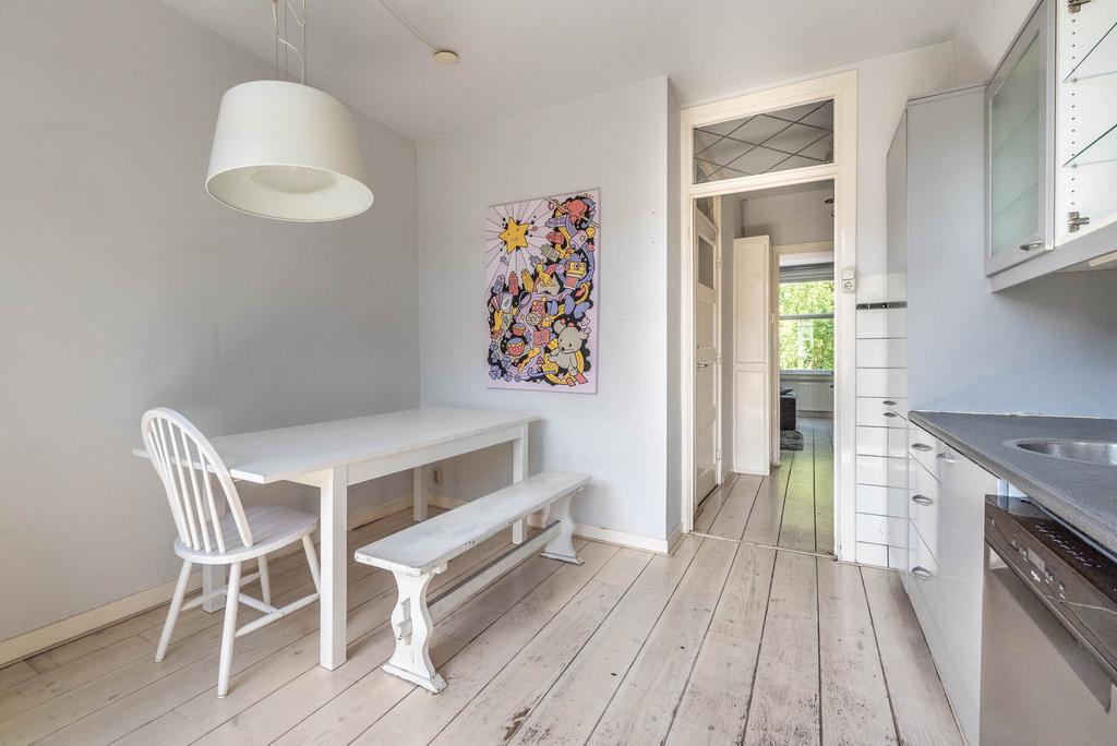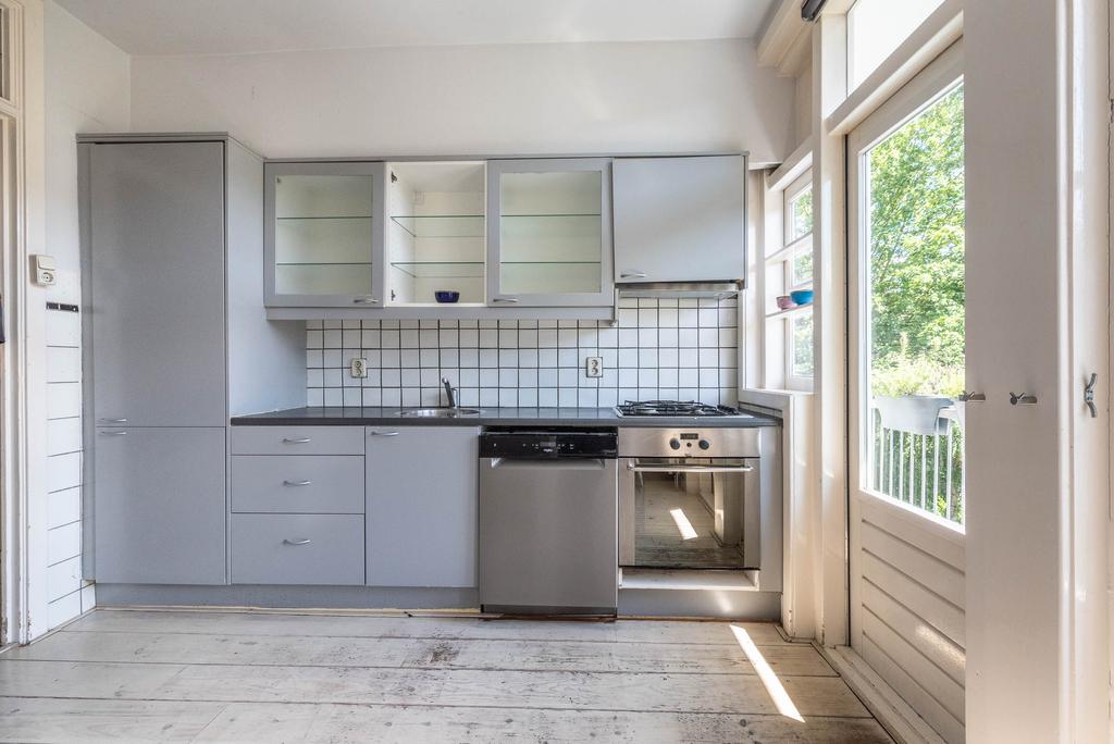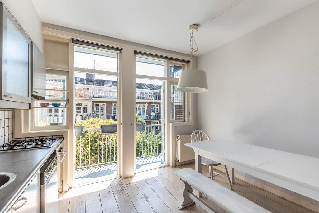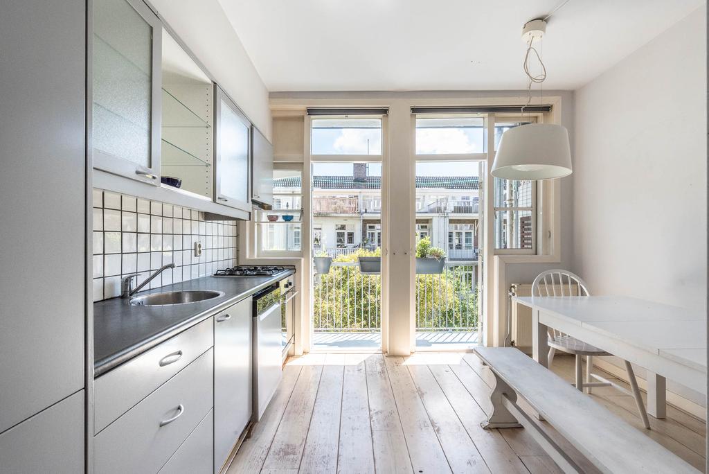 De keuken is echt ruim te noemen en heeft zelfs plek genoeg voor een eettafel. Vanuit de keuken is er toegang tot het balkon aan de achterzijde. In de zomermaanden haal je hierdoor de zon naar binnen.