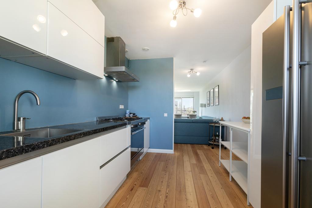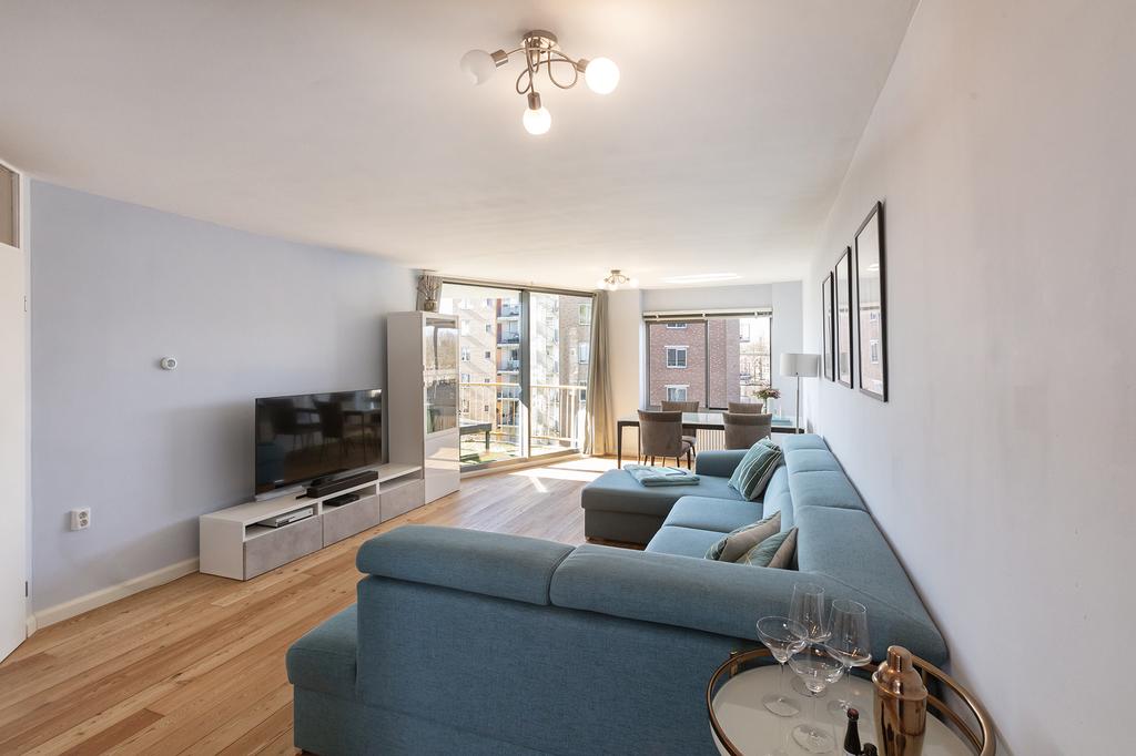 Bij binnenkomst valt direct de ruimte en het licht op. Dankzij de grote ramen op het zuiden geniet je de hele dag van natuurlijk licht en zelfs in de winter wordt het appartement heerlijk warm. De woonkamer is ruim opgezet en biedt plek voor een gezellige zithoek en een grote eettafel. De keuken is modern en voorzien van hoogwaardige inbouwapparatuur.