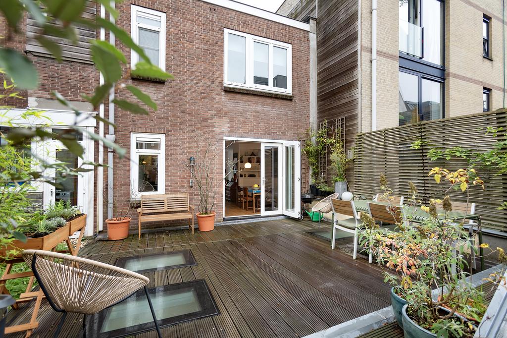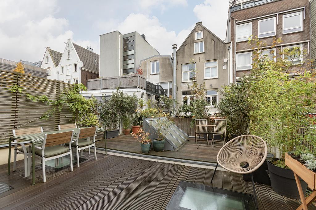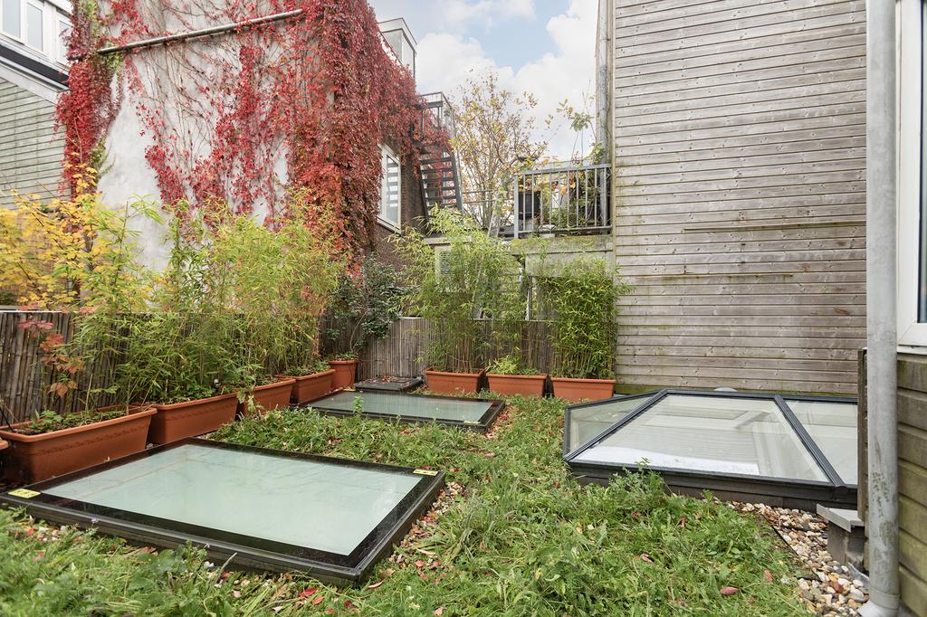 Het dakterras aan de achterzijde is een ware oase van rust. Met een oppervlakte van ruim 25 m² biedt dit zonnige terras volop ruimte om te loungen of te dineren. Al jarenlang wordt er ook nog een deel van de buren (uiteraard met toestemming) gebruikt en is een ander deel van het dak aangelegd als groen dak.
