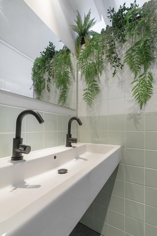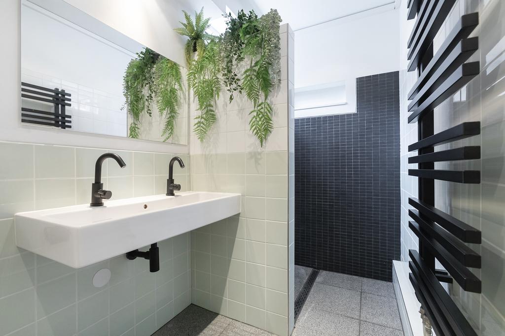 – Moderne badkamer met inloopdouche, dubbele wastafel en toilet