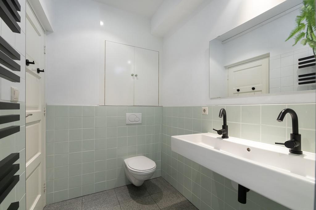 Het appartement heeft twee comfortabele slaapkamers: één aan de voorzijde en één aan de achterzijde van de woning. Beide kamers zijn praktisch ingericht en bieden volop mogelijkheden voor een tweepersoonsbed of een thuiskantoor. De moderne badkamer is stijlvol afgewerkt en uitgerust met een inloopdouche, dubbele wastafel en toilet – een fijne plek om even tot rust te komen.