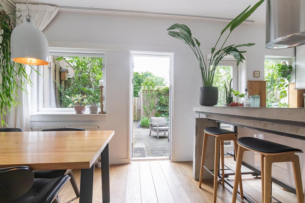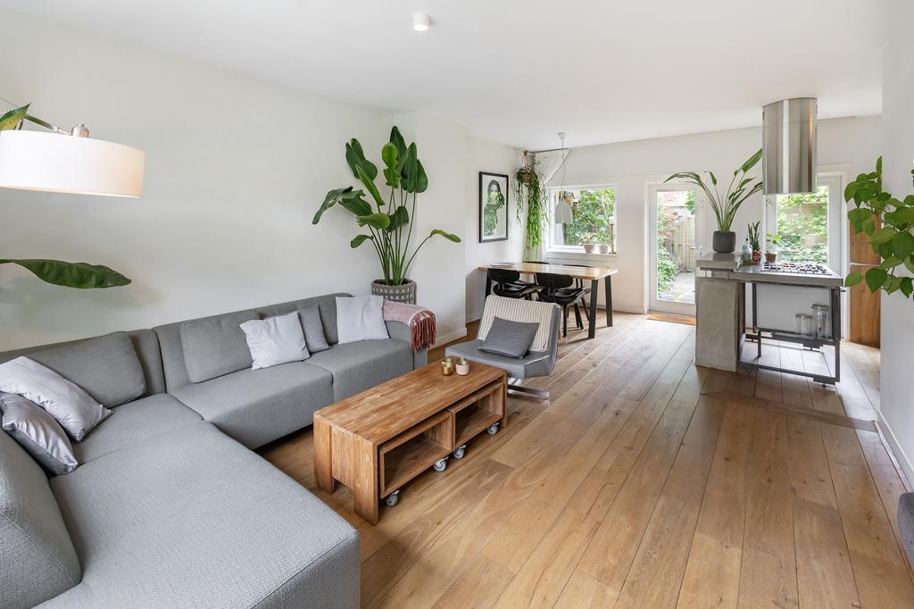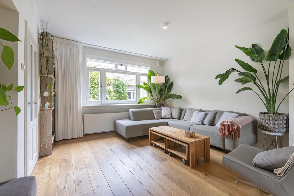 Bij binnenkomst voel je meteen de charmante sfeer van dit huis. De woonkamer is heerlijk licht, dankzij de grote ramen die de ruimte vullen met zonlicht. De open indeling maakt het gezellig en geeft een ruimtelijk gevoel. Het uitzicht op de groene, zonnige tuin brengt buiten naar binnen – een perfecte plek om te ontspannen na een drukke dag.