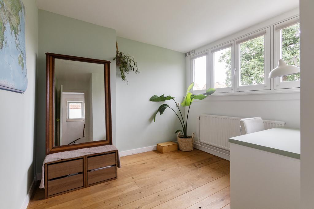 Step outside and enjoy your sunny front and back garden, facing southwest. With 56 m² of outdoor space, there’s plenty of room for a cozy barbecue, a comfortable lounge set, or a place for kids to play freely. The garden offers a lot of privacy and includes a brick storage shed and a convenient back entrance. It’s your own piece of greenery in the city!