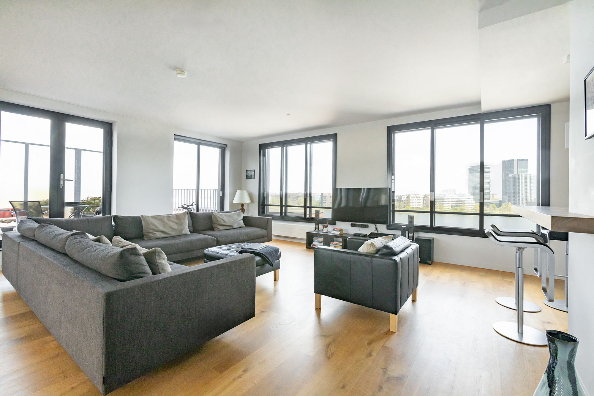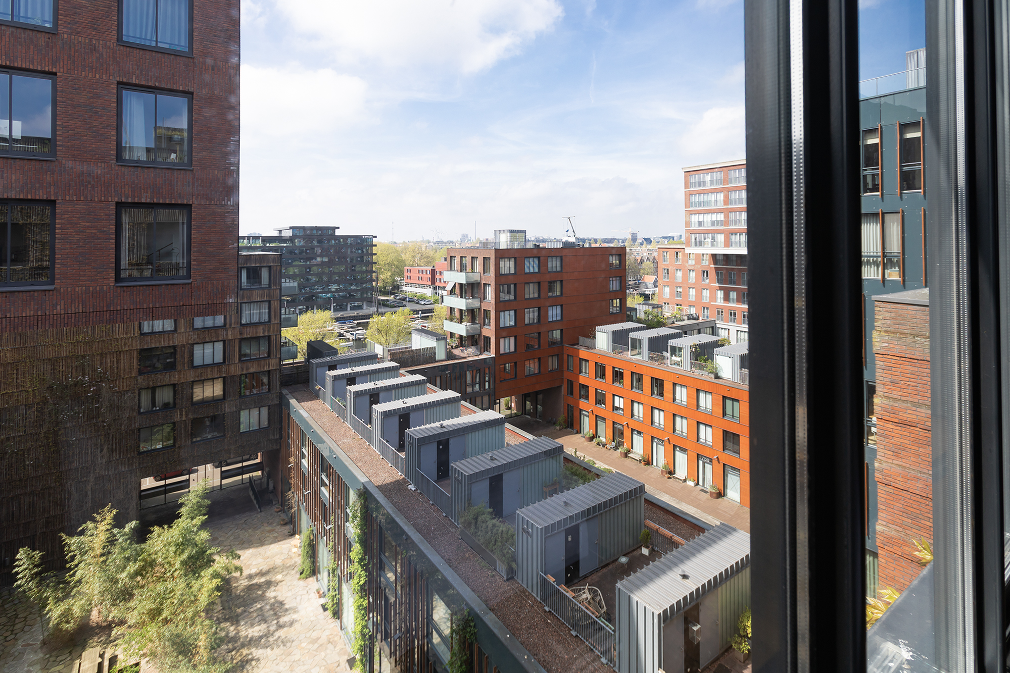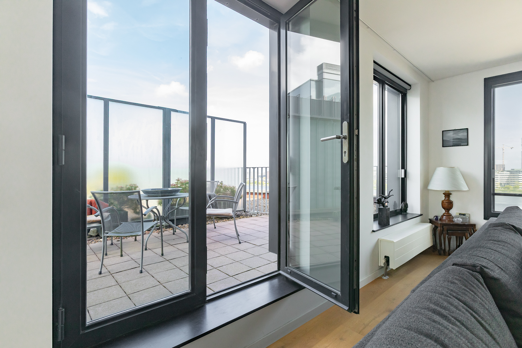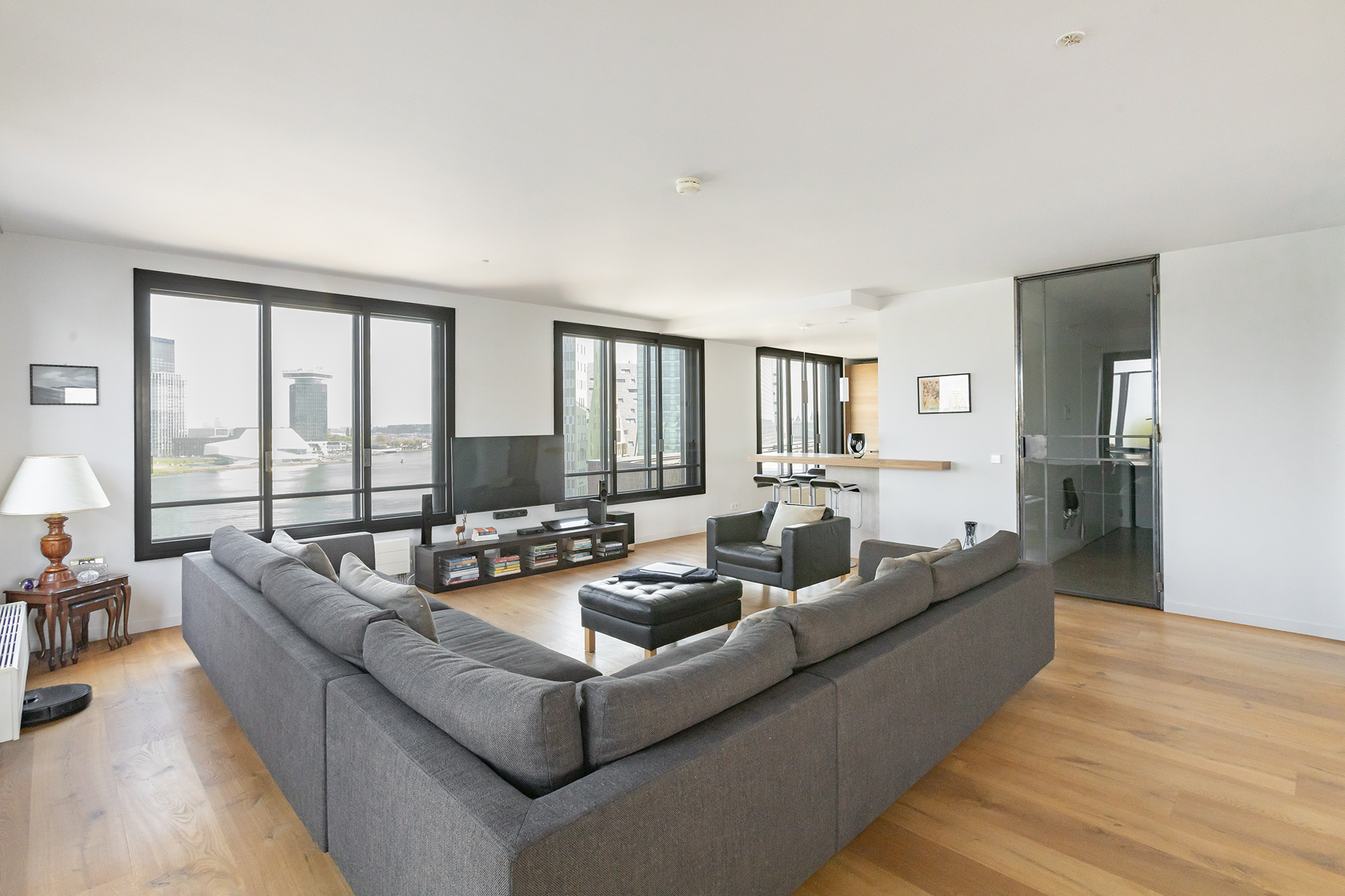 This stunning 2-room apartment of 112 m², located on the seventh floor of a modern complex in the sought-after Westerdok area, offers it all: natural light, space, tranquillity – and views that leave you speechless.