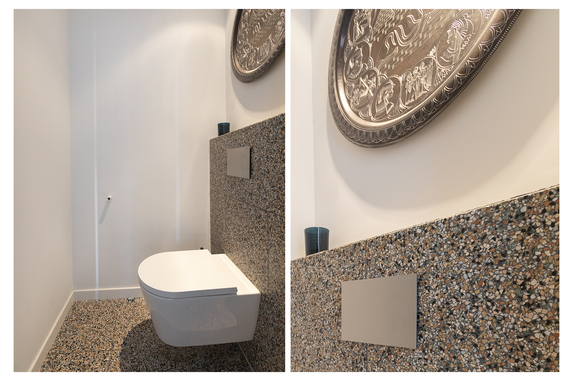 Het separate gasten-toilet is in dezelfde lijn afgewerkt.