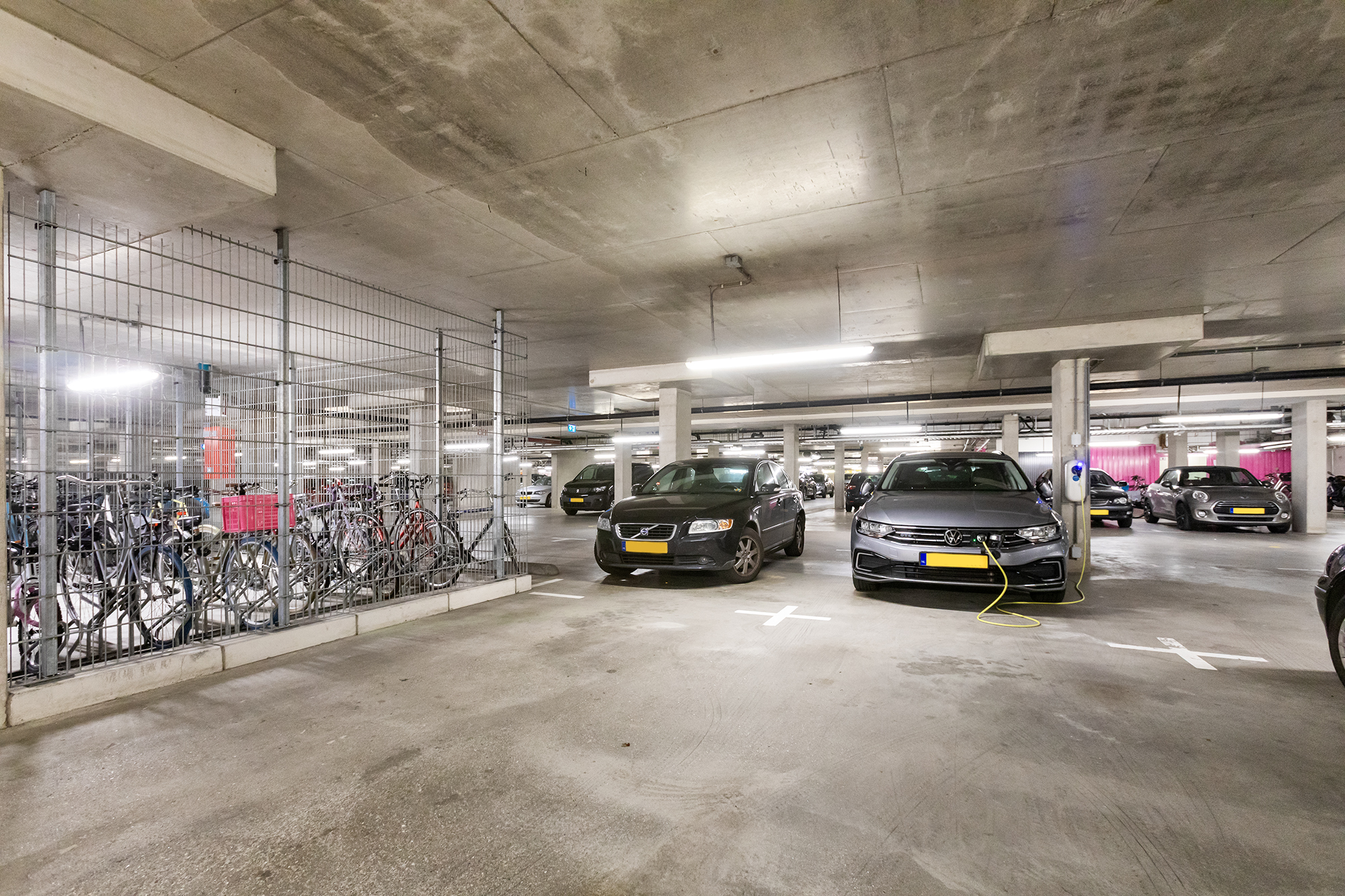 Public transport couldn’t be closer – the bus stop (line 48) is right in front of the building. Central Station is just a 2-minute cycle away. The ferry to Amsterdam North is nearby, and the A10 ring road is easily accessible by car. The underground garage offers not only your private parking space, but also EV charging options.