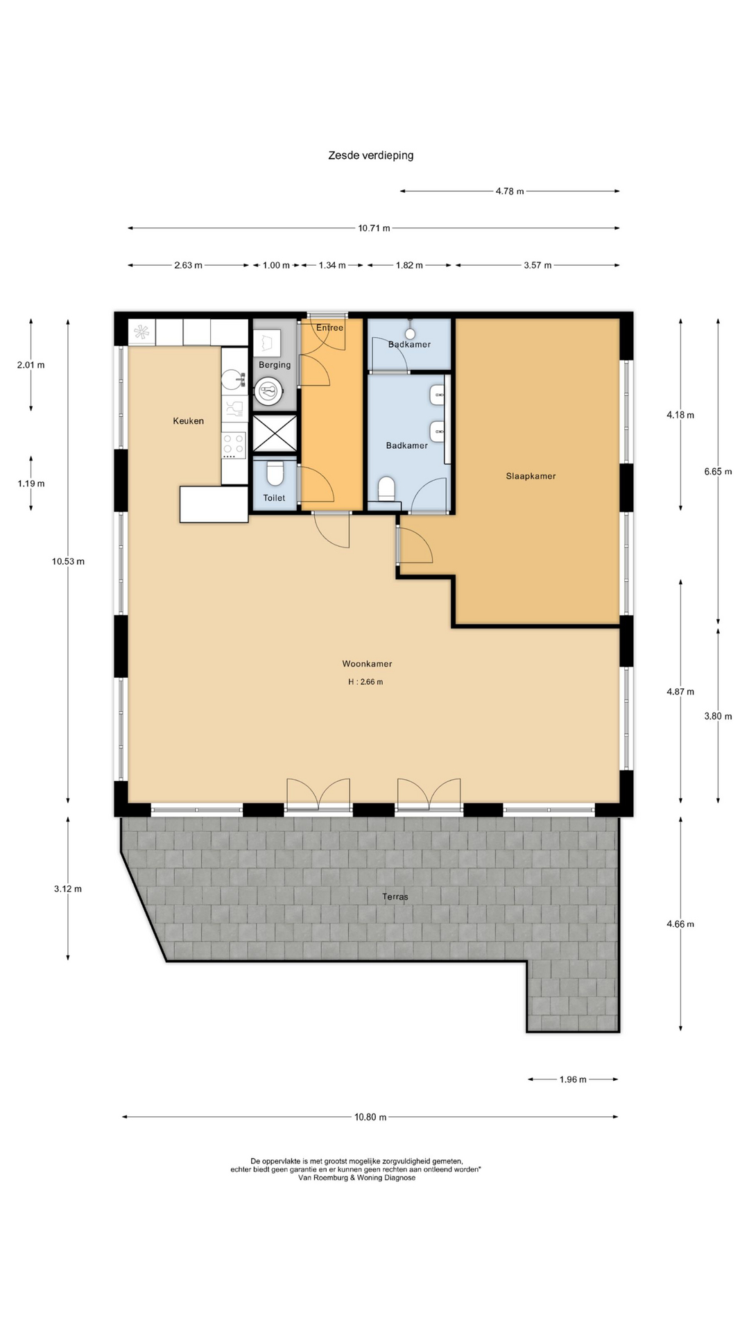 Het appartement heeft een woonoppervlakte van 112 m², buitenruimte van ca. 36 m², een externe berging van 5 m² en een privéparkeerplaats. Ingemeten door een extern buro conform NEN2580.