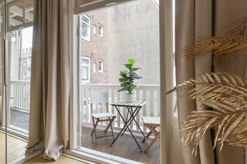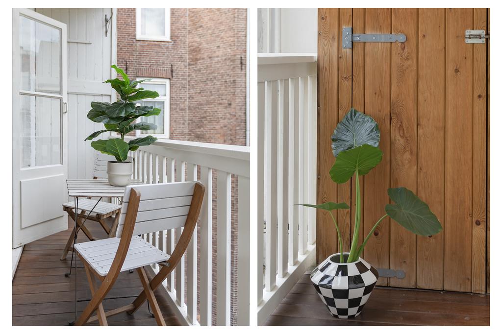 Zowel aan de voor- als achterzijde heb je buitenruimte. Het balkon aan de achterzijde ligt op het noordwesten, het Franse balkon aan de voorzijde vangt de zon vanaf de ochtend tot in de middag. Door de bomen in de straat en de openslaande deuren aan beide kanten haal je het buitengevoel makkelijk naar binnen.